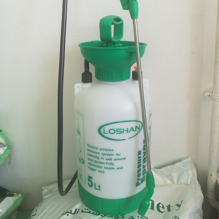 سم پاش 5لیتری مدل لوشان با تلمبه دستی ورنگ سبز آبی زیبا، بسیار سبک وکار بردی برای مصارف خانگی وباغ های کوچک