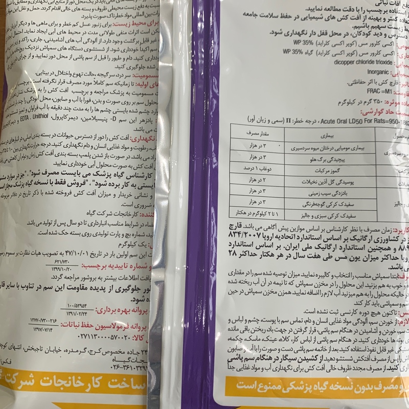 اکسی کلرور مس کوپر اکسی کلراید قارچ کش پودری 1کیلویی