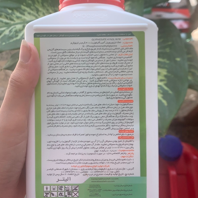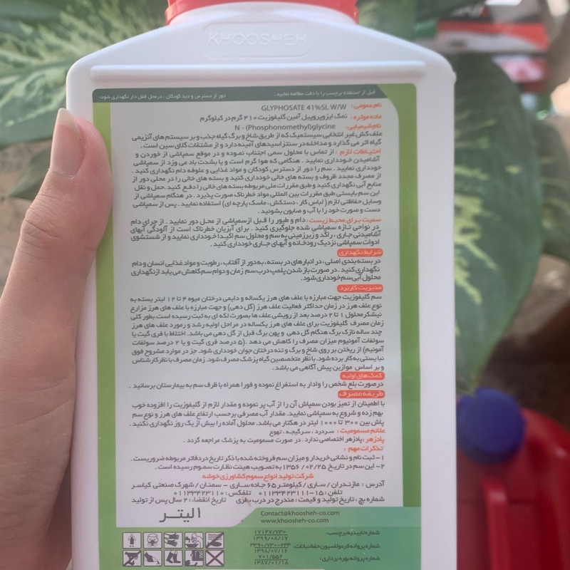 میزان مصرف :به طور معمول60سی سی در 20لیتر آب استفاده میشود، استفاده از سولفات آمونیوم میزان مصرف راکاهش میدهد.