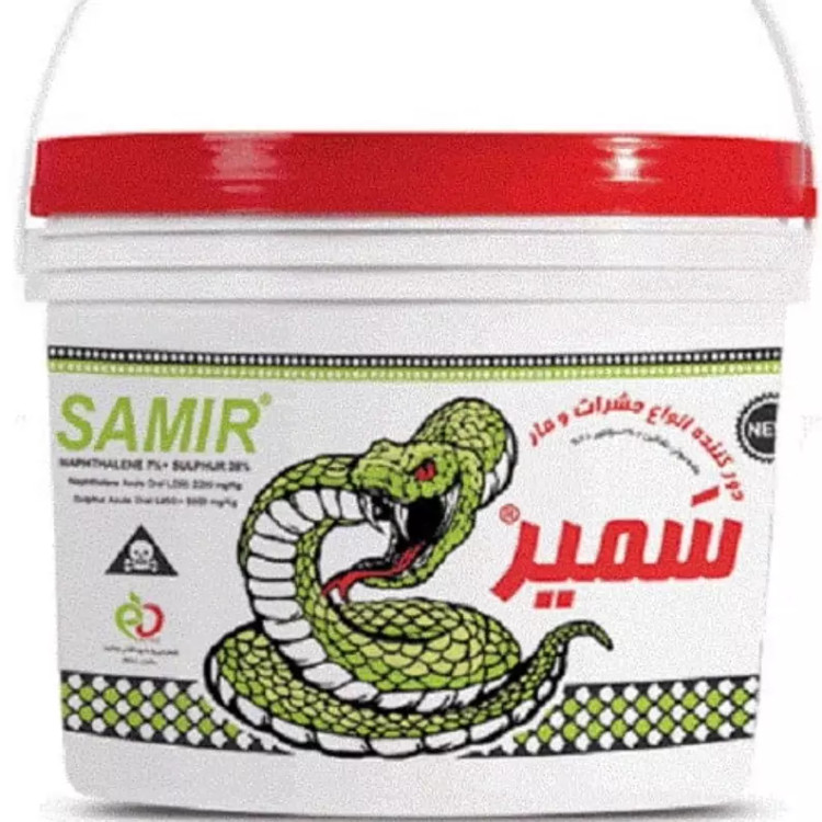 پودر دور کننده مار سمیران پودر دور کننده مار “سَمیر” محصول جدید تولید شرکت سمیران، بعنوان دورکننده مار و انواع حشرات، خزندگان، جوندگان و … دارای کاربرد آسان و اثرگذاری فوق العاده است. “سَمیر” متشکل از نفتالین 7% و سولفور28% می باشد. این محصول صرفاً جهت استفاده در خارج از مناطق مسکونی مانند اطراف چادرها یا محل سکونت افراد، کنار رودخانه ها، گاراژها، انبارها و کارگاههای چوب، شن و ماسه، اطراف زباله دانی ها، کانتینرها، خانه های پیش ساخته، چادرها، سنگرهای نظامی، انبارهای صحرایی و انبارهای علوفه می باشد. همچنین می توان از آن در اطراف باغچه ها نیز استفاده نمود. از مصرف در داخل باغچه خودداری شود.