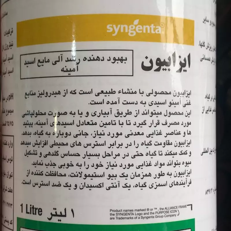 بهبود دهنده رشد آلی مایع اسید آمینه افزایش مقاومت گیاه در برابر انواع تنشها افزایش کلدهی،تشکیل میوه ،کاهش ریزش گلها افزایش میزان همرسی وهمسانی میوه ها بهبود رنگ،طعم،وشکل میوه ها افزایش ریشه دهی