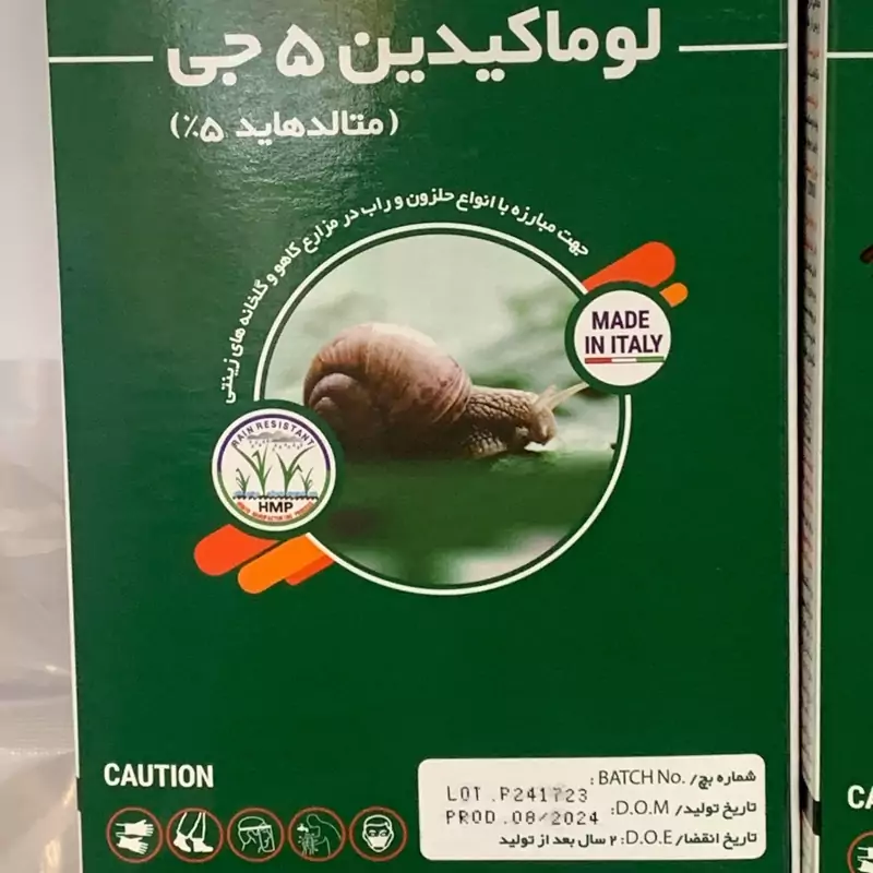 سم حلزون کش ضدآب متالدهید5درصد لوماکیدین5جی نیم کیلویی