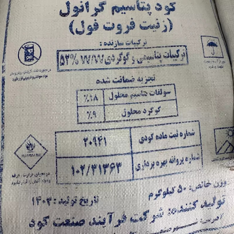 کود پتاسیم گرانوله 52درصد زنیت فروت فول50کیلویی (پس کرایه)