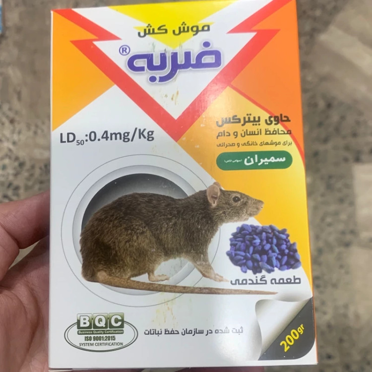 موش کش گندمی ضربه قادر به نابودی موش های ورامین(موشهای کوچک)، مغان و انباری می باشد. میزان مصرف 20 الی 50 گرم کنار لانه موش یا جایی که برای تغذیه موش مناسب است. ماده موثره موجود در “ضربه®”،0/005گرم بروديفاکوم در هر کیلوگرم است که متعلق به نسل دوم مواد ضد انعقاد خونی بوده است.