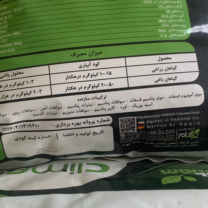 کود سه بیست کلی مکس پرهام اسپانیایی 10کیلویی