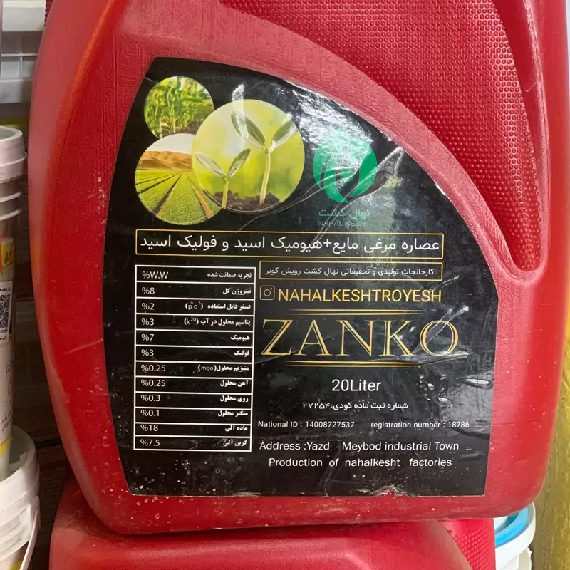 کود مرغی مایع استارتر زانکو 20لیتری نهال کشت (پس کرایه)