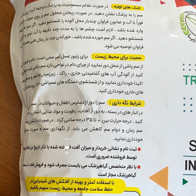 حشره کش غیر سیستمیک بااثر تماسی وگوارشی از خانواده ارگانو فسفات باطیف اثر گذرای وسیع