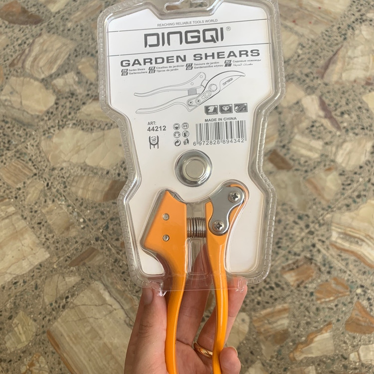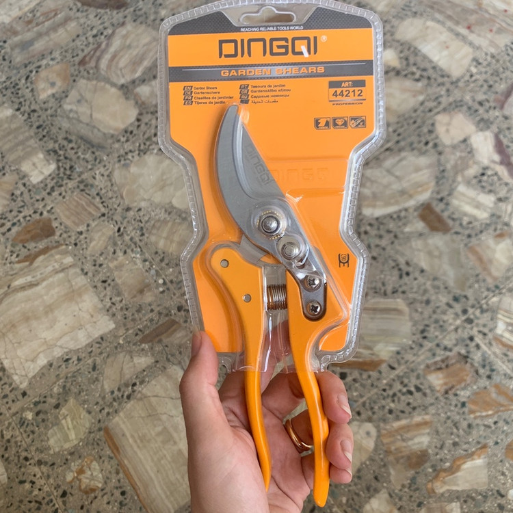 قیچی باغبانی دینگی این کالا محصولی با کیفیت و درجه 1 و ساخت کشور چین است که در ساخت آن از تیغه های بادوام و مرغوب استفاده شده و بسیار خوش دست ، سبک و روان است تا کاربر هنگام استفاده از آن هنگام کار خسته نشود . یکی از بهترین و مقرون به صرفه ترین قیچی باغبانی های موجود در بازار است . مشخصات قیچی باغبانی دینگی تیغه استفاده شده در ابزار از جنس فولاد sk5 درجه 1 می باشد که مدتی زیادی بدون کند شدن برای شما کار میکند و قادر به بریدن شاخه های قطور نیز می باشد . دسته به کار رفته در آن از جنس آلمینیوم است که وزن قیچی به همین دلیل بسیار سبک است و در هنگام کار کرد برای افراد راست دست بسیار خوش دست می باشد . در مهندسی ساخت آن از طراحی ارگونومیک استفاده شده که بیشترین تناسب با جسم و محیط باغداران و کشاورزان را فراهم کرده که این عزیزان به راحتی و بدون خراب شدن از آن استفاده کنند .